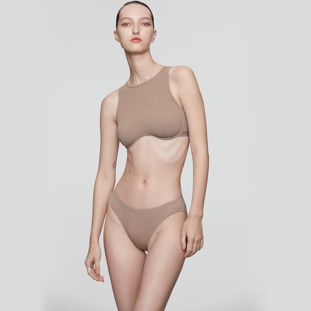 Back Cutout Eco Underwire Tank Top, Light Brown