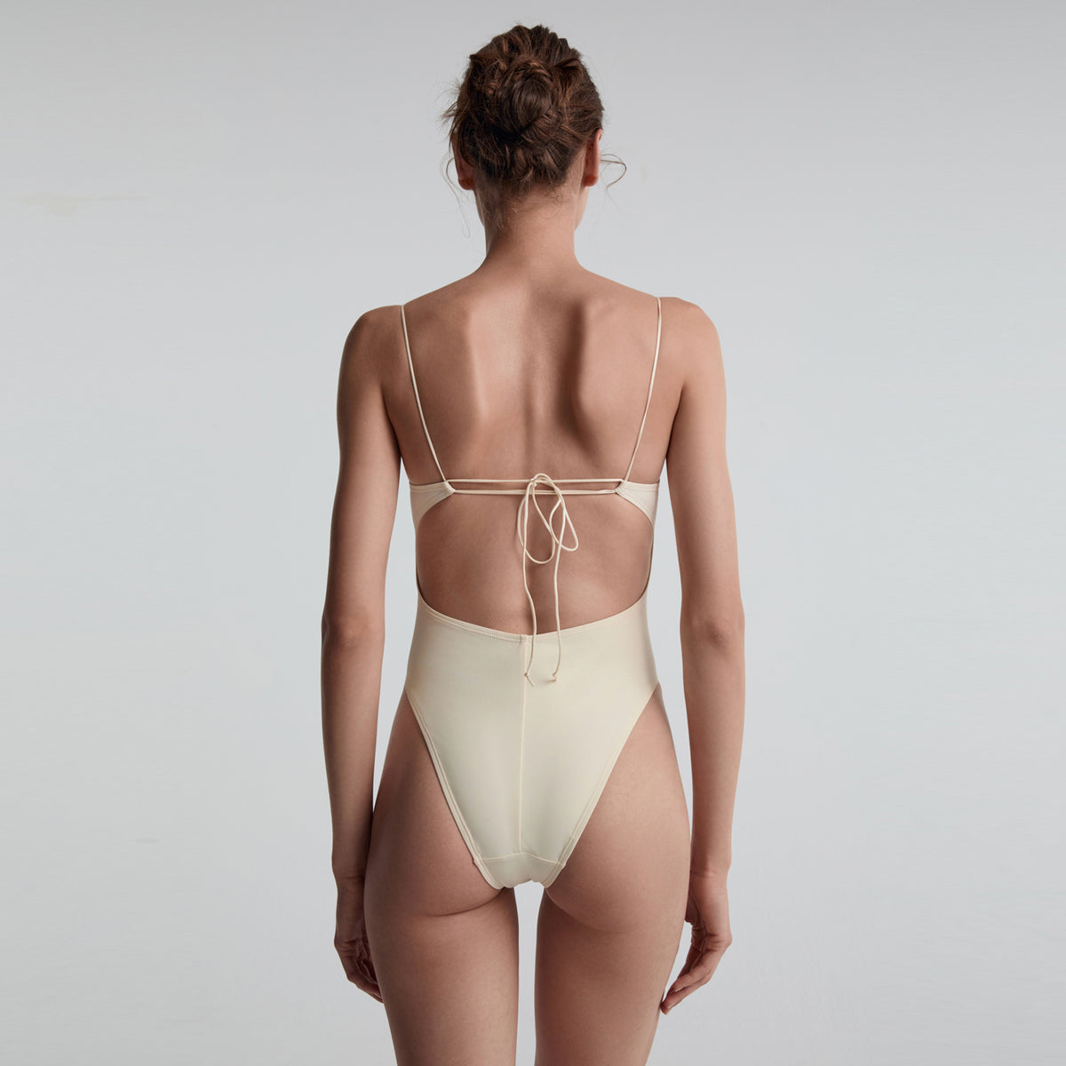 The designed underwire one-piece swimsuit features thin straps that beautifully highlight the shoulders and neck. Its clean, minimalist design accentuates the body’s elegant curves.