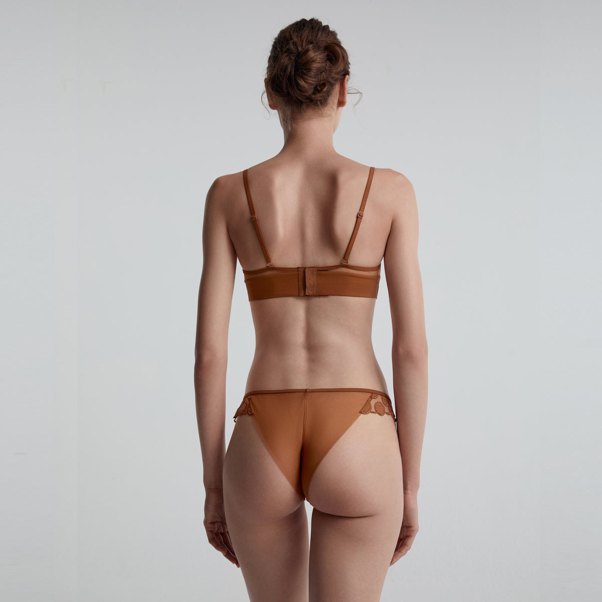 The bra features exquisite embroidery with vibrant yet orderly polka dot patterns, crafted from fine, soft-hued threads that harmonize beautifully with its overall tone. The 3/4 cup design offers balanced coverage, naturally accentuating curves, while the stable underwire support and sleek, adjustable straps ensure both functionality and style.