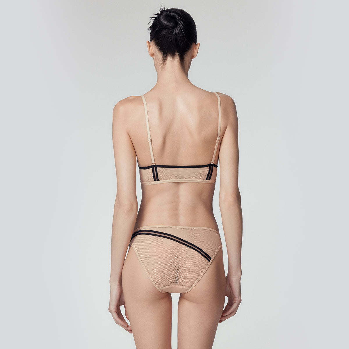 Stretchy, lightweight mesh combined with contrasting lines provides a seamless yet gentle wrap. The all-cotton crotch ensures comfort, allowing for freedom of movement in everyday wear.