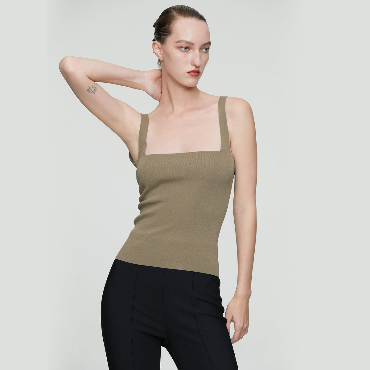 Featuring a gracefully simple square neckline design, paired with delicate shoulder straps for an elegant and slightly sensual touch. Choose from classic versatile black, pure sandy white, stylish coffee, or elegant moss green. Whether for work or at home, it can be worn effortlessly, making it a versatile daily piece that is easy to mix and match according to your preferences.