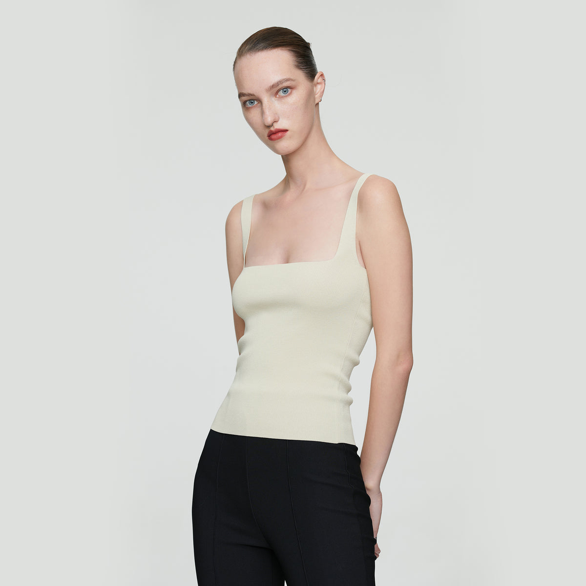 Featuring a gracefully simple square neckline design, paired with delicate shoulder straps for an elegant and slightly sensual touch. Choose from classic versatile black, pure sandy white, stylish coffee, or elegant moss green. Whether for work or at home, it can be worn effortlessly, making it a versatile daily piece that is easy to mix and match according to your preferences.