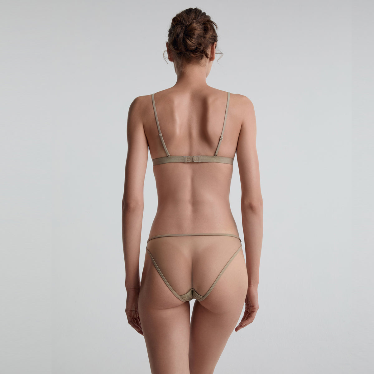 The simple lines of the triangle cups contrast beautifully with the intricate lace pattern, creating a design that is both light and rich. Like a vibrant plant vine, it captivates with its elegance and detail.