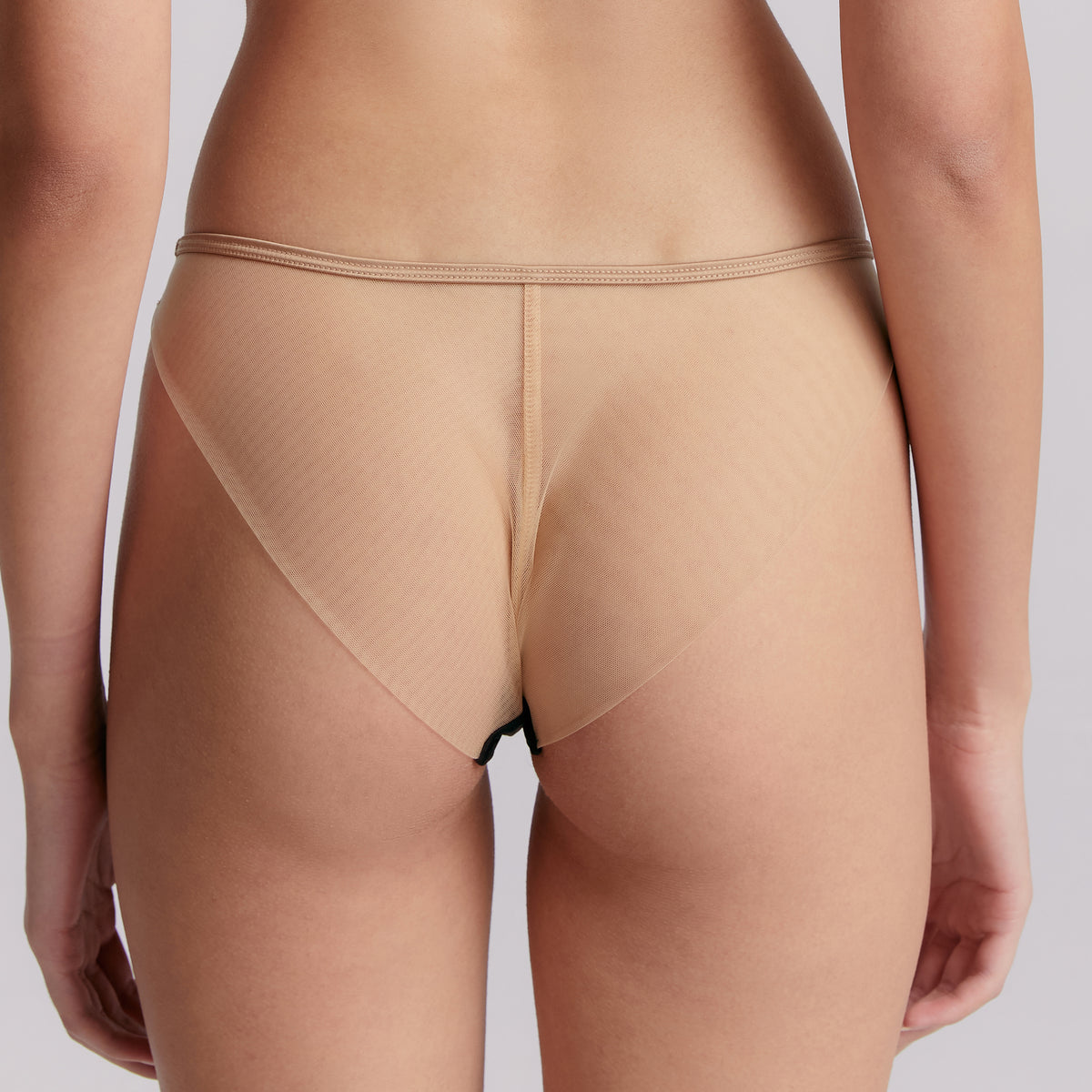 Delicate Leavers lace, romantic and feminine, defined by the refined contrast of nude and black.