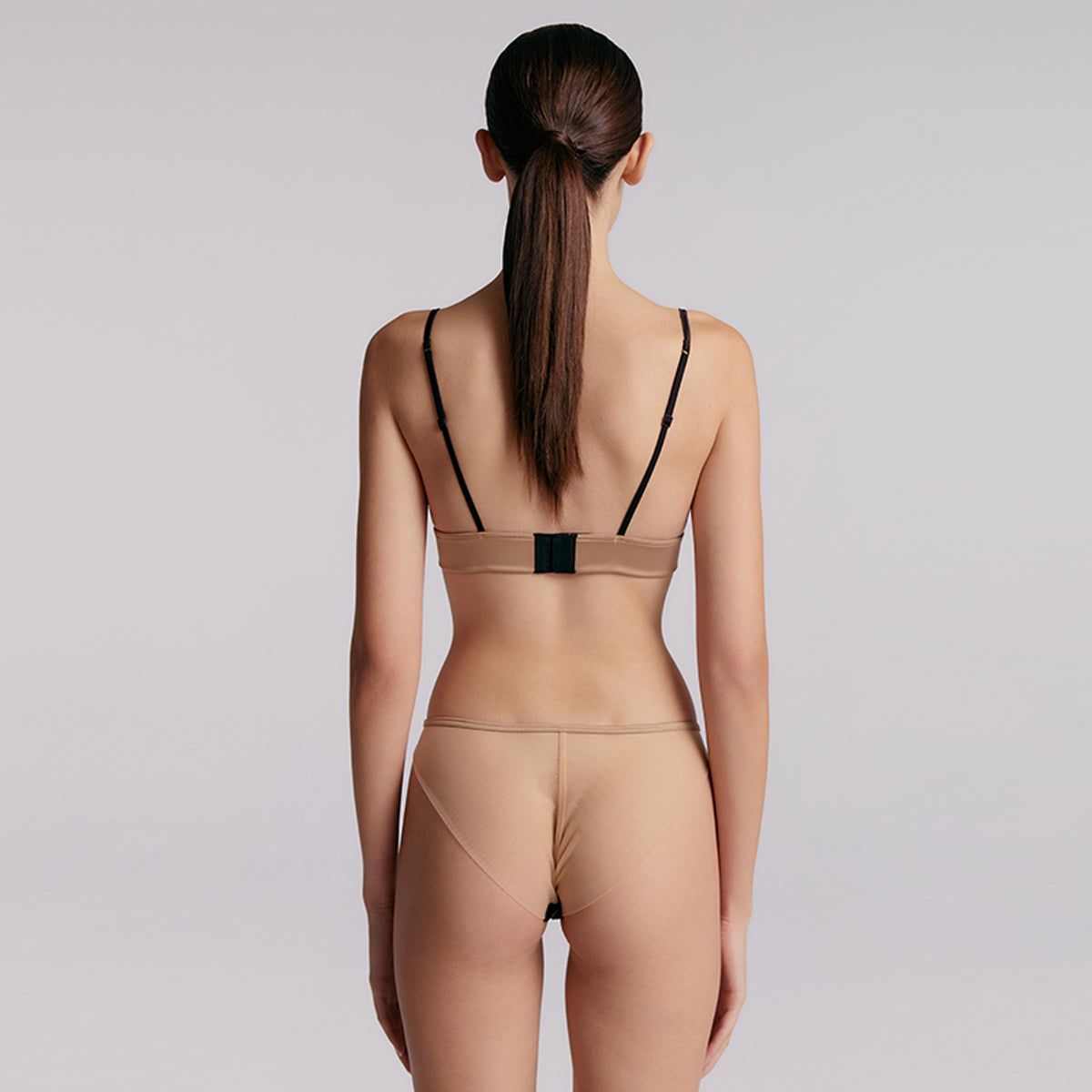 Delicate Leavers lace, romantic and feminine, defined by the refined contrast of nude and black.