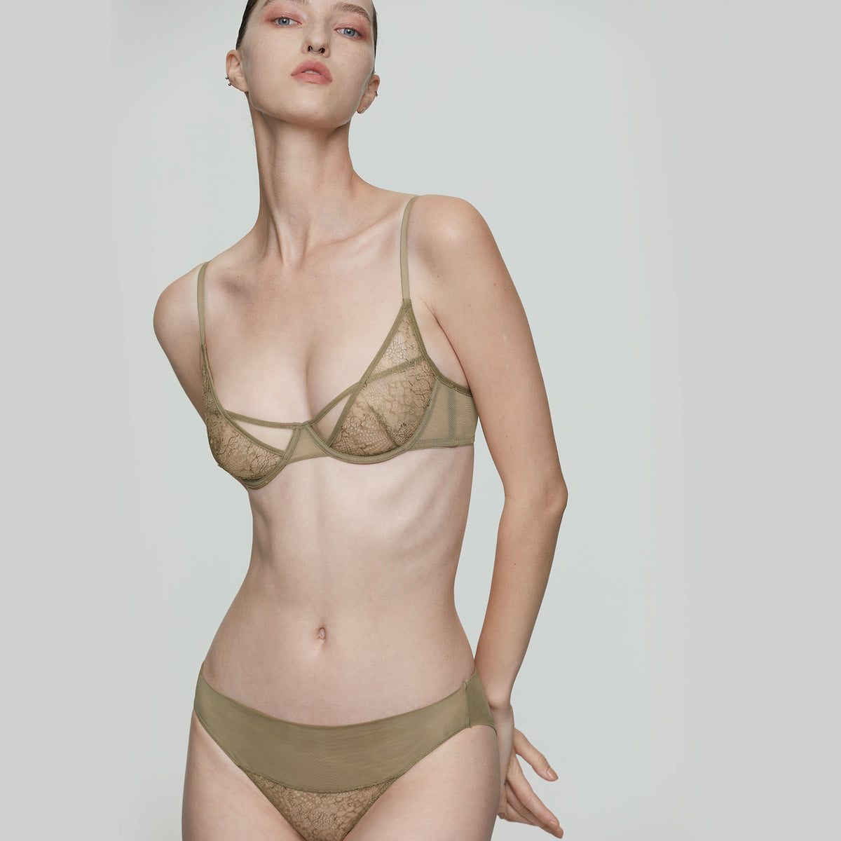 Product: Leavers Lace Cutout 3/4 Underwire Bra,Grayish Green