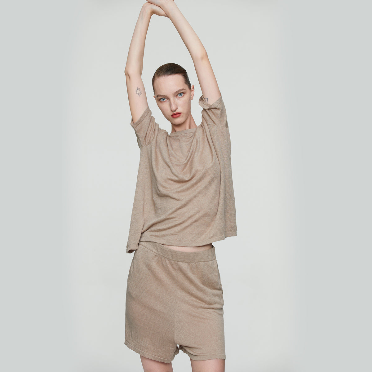 Natural linen knitted fabric is light and breathable, with a sense of texture and a classic loose silhouette. It provides comfort and ease for both everyday wear and vacation dressing.