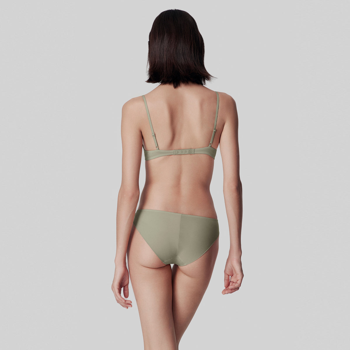 It is designed with a double-layered cotton-like high-stretch fabric using molding technology. The seamless and invisible design, along with the memory wire, gently contours the bust without any discomfort. The transparent front center creates a fashionable visual effect.