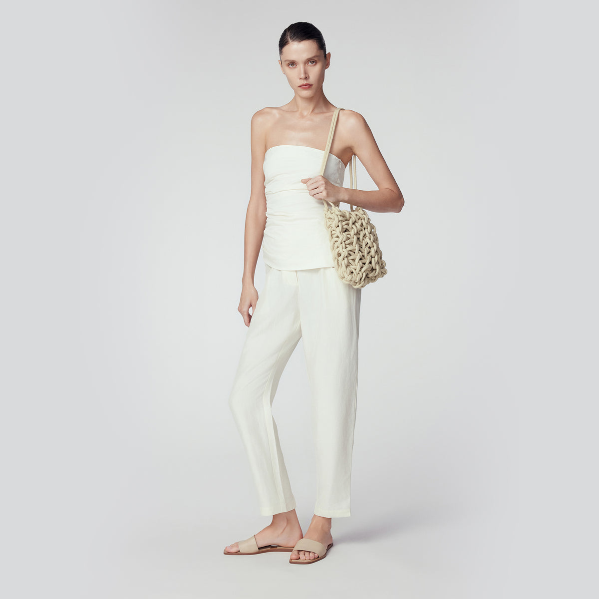 One-Side Gathering Tube-Top, Off White