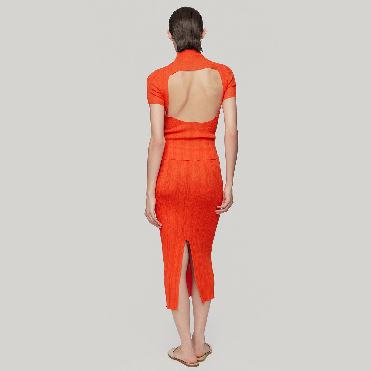 Open-back Knit Short Sleeve,Lava Red