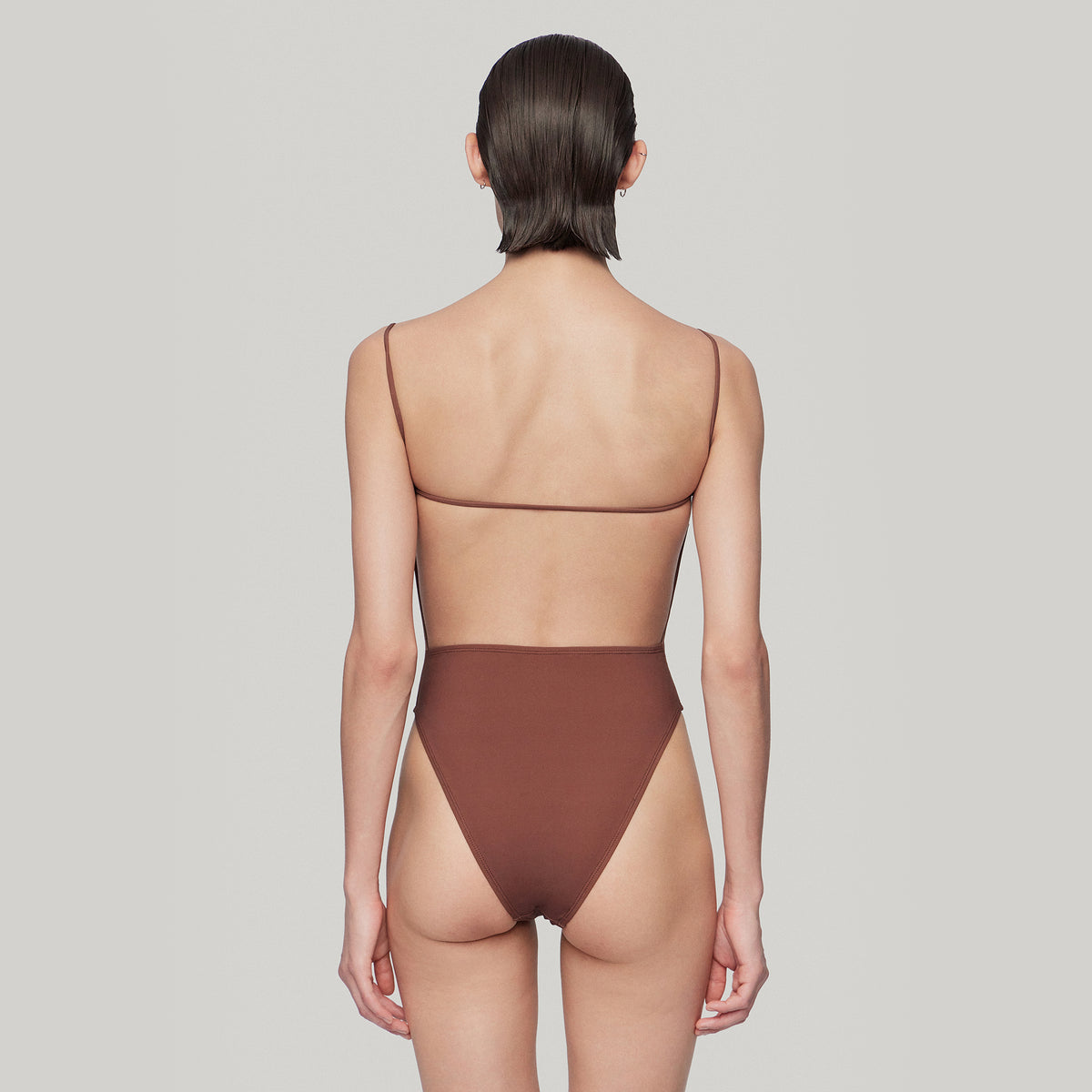 The One-Piece Swimsuit features a square neckline and openback design, exuding a sleek and minimalist aesthetic while accentuating the body's beautiful curves. The thin shoulder straps and adjustable decorative straps in the front allow for a customized fit. It comes with removable chest pads for added comfort and support.