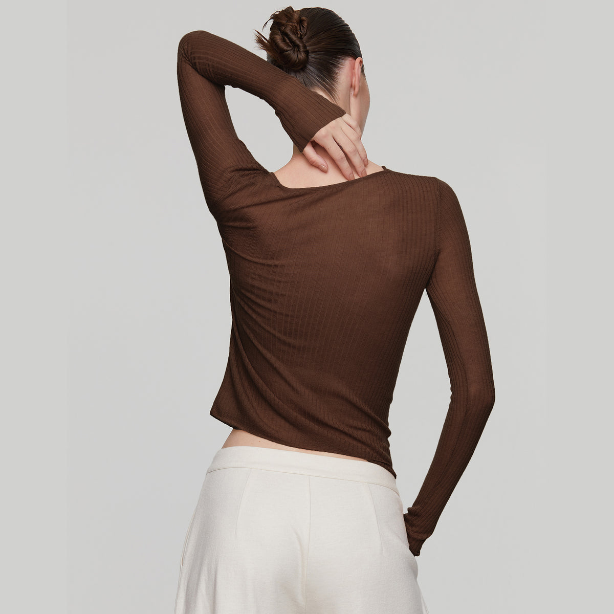 100% water-soluble wool which is comfortable, snug and gives you breathable warmth. The U-neck, paired with thin line detail, suitable for versatile wear at home or outside.