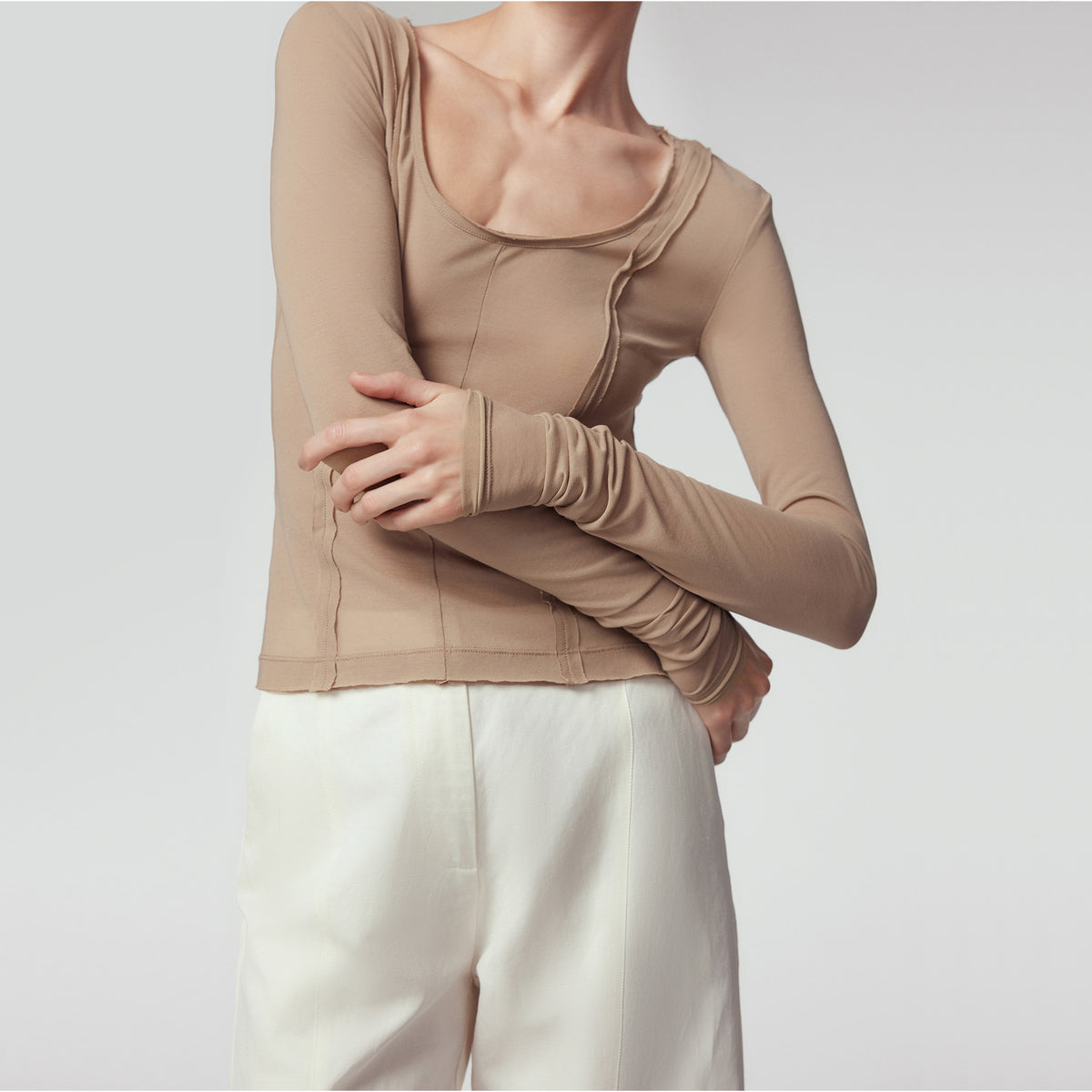 The roundneck highlights the elegant lines of the shoulders and neck. Made from pure cotton, the fabric is soft and close-fitting.