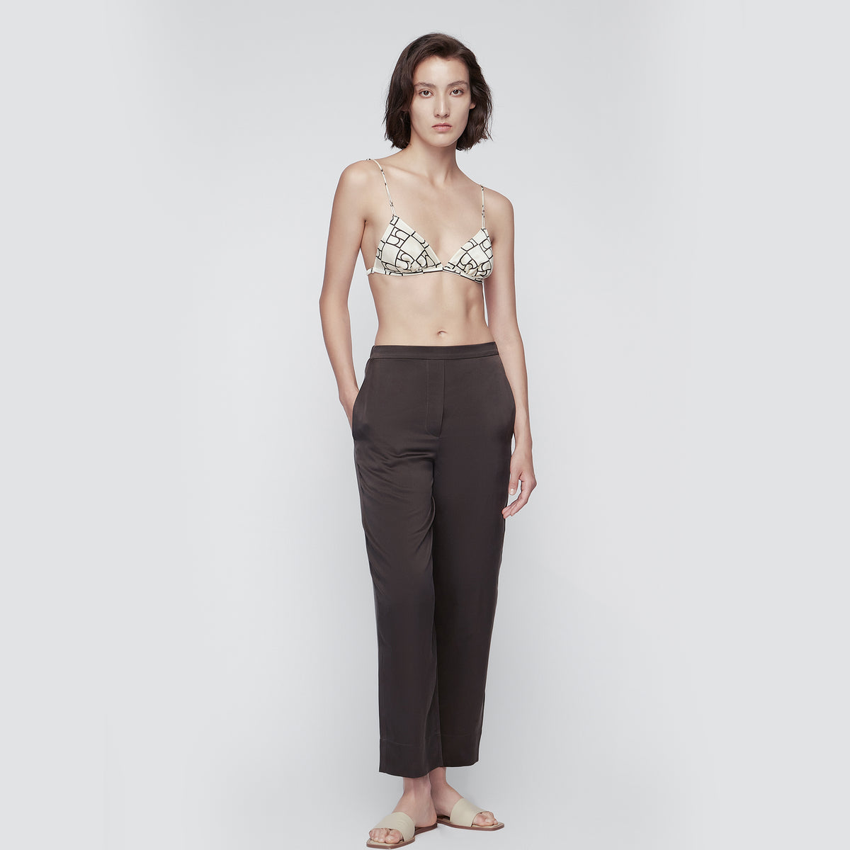 Ultimate comfort with our adjustable strap lingerie. Its lightweight design with 100% silk offers a barely-there feel, while the unique Beige logo print adds a distinctive touch.