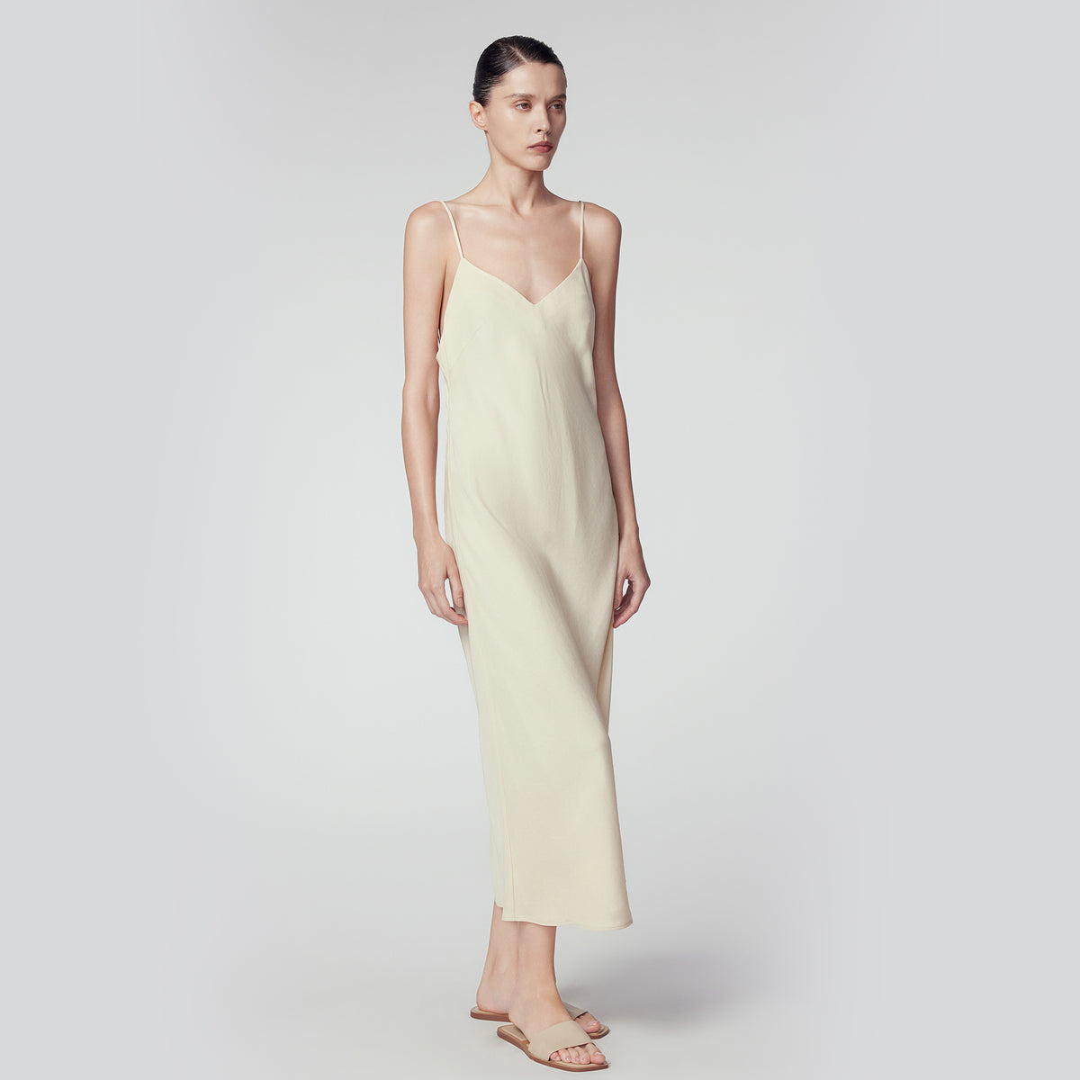 The V-neckline highlights the shoulder and neck lines, while the open-back design adds extra charn. Made from 100% premium silk, it offers a soft, delicate, and smooth texture, providing a perfect balance of comfort and style.