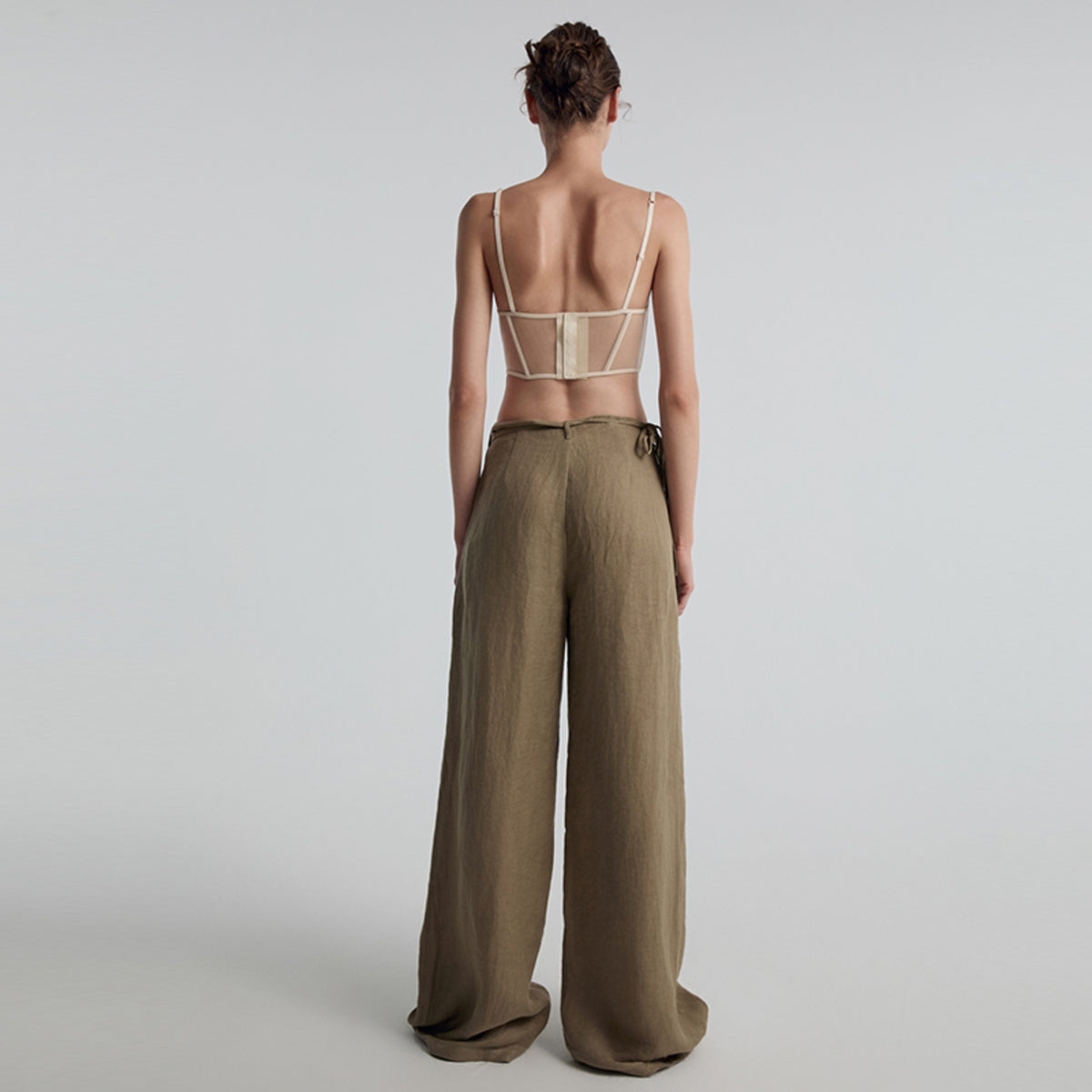 The cascading pleats of the sheer mesh exude a full romantic charm, while the gentle colors instantly transport you to a distant journey of the heart. With great elasticity and high comfort, it suits various bust shapes. The boning creates an architectural structure, making it perfect for layering as outerwear.