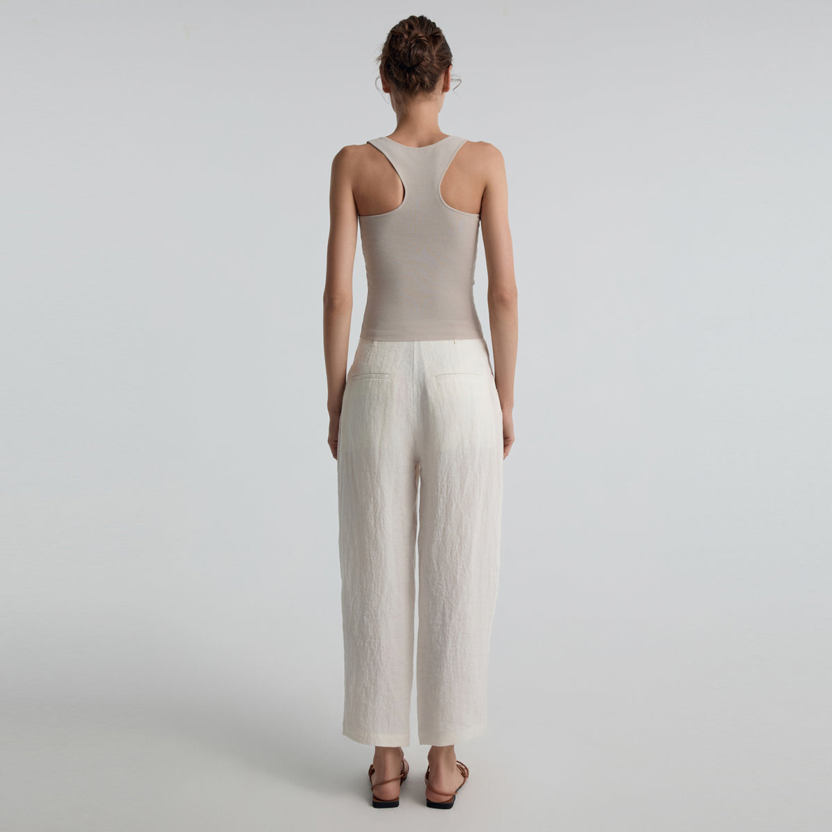 The knotted detail and ribbed texture create a timeless tank top, effortlessly pairing with pants or skirts for any look.