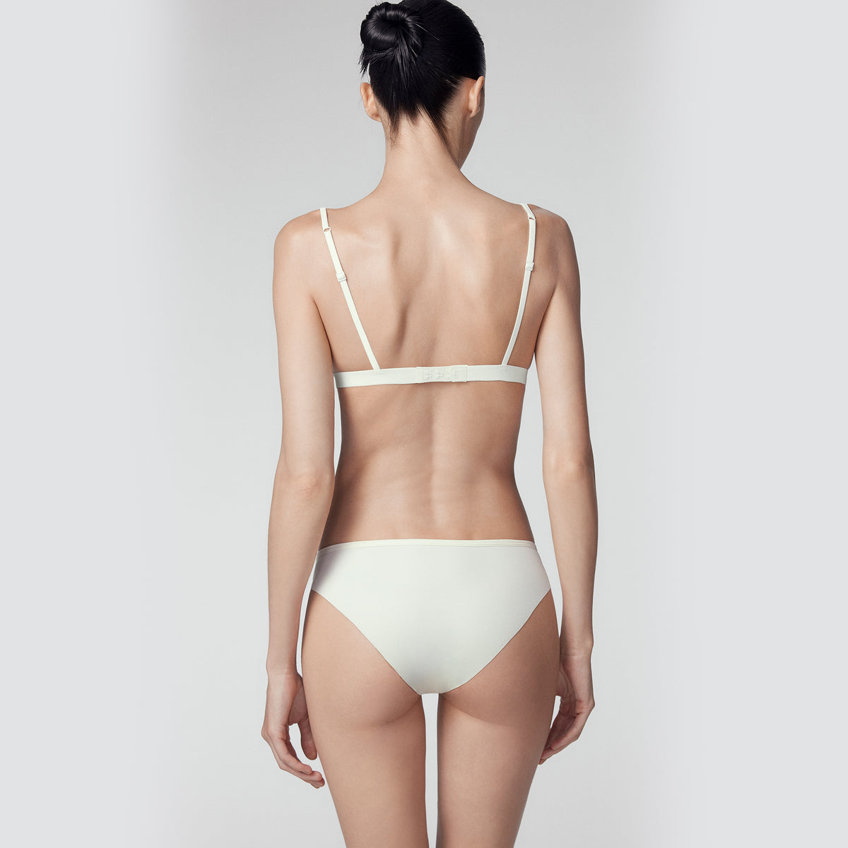 The combination of black and white tones with nude mesh creates a sharp contrast, while geometric cutouts enhance the perspective effect. The perfect blend of minimalism and sensuality outlines smooth and clear line contours.